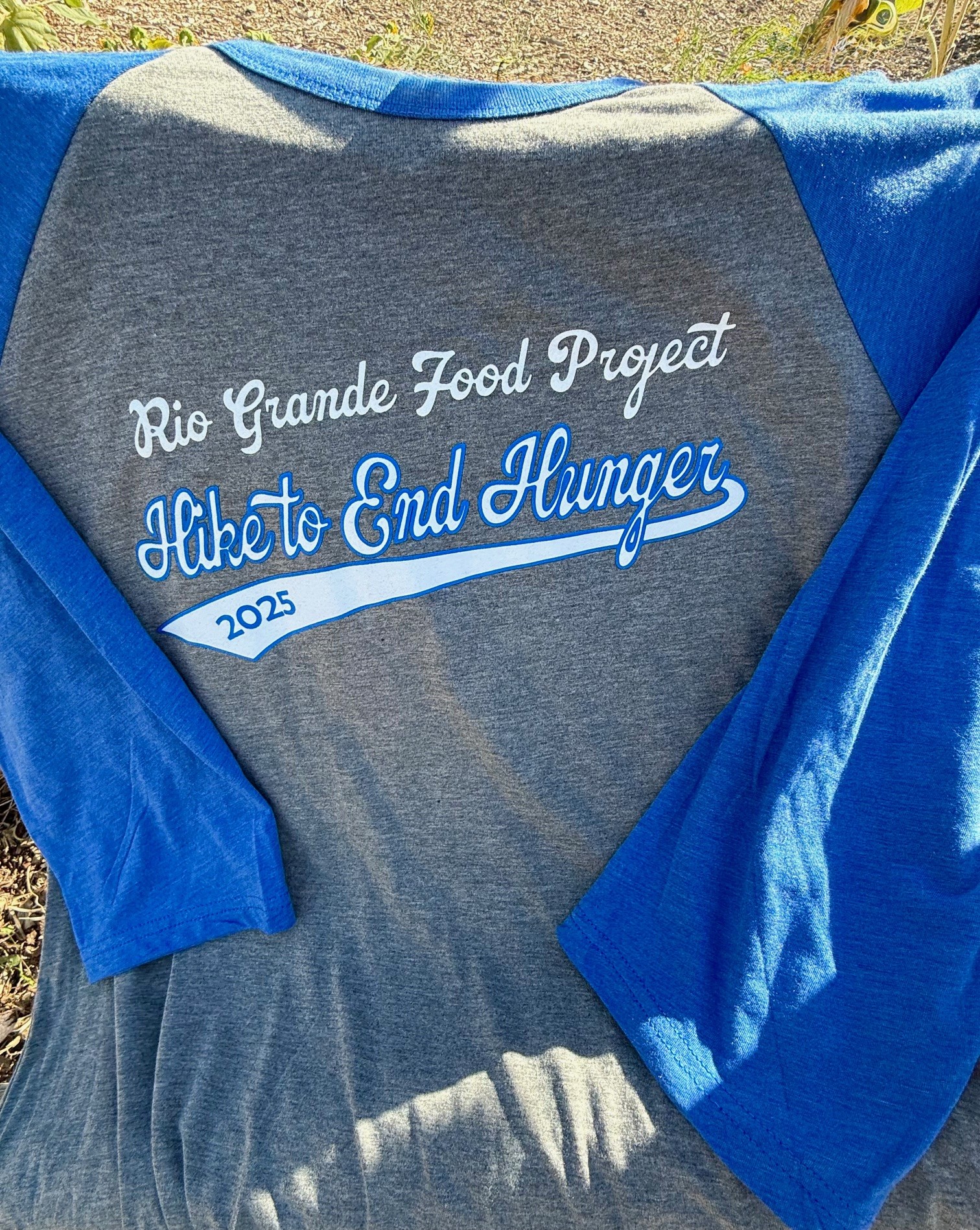 Don't miss out on the 2025 Hike to End Hunger Special Edition Tee! It's our 10th Annual event and since Rio Grande Food Project is a community-wide effort, we went with the Team Theme with a royal blue and gray baseball tee. Quantities are limited so don't hesitate to get your very own Special Edition 10th Annual tee!